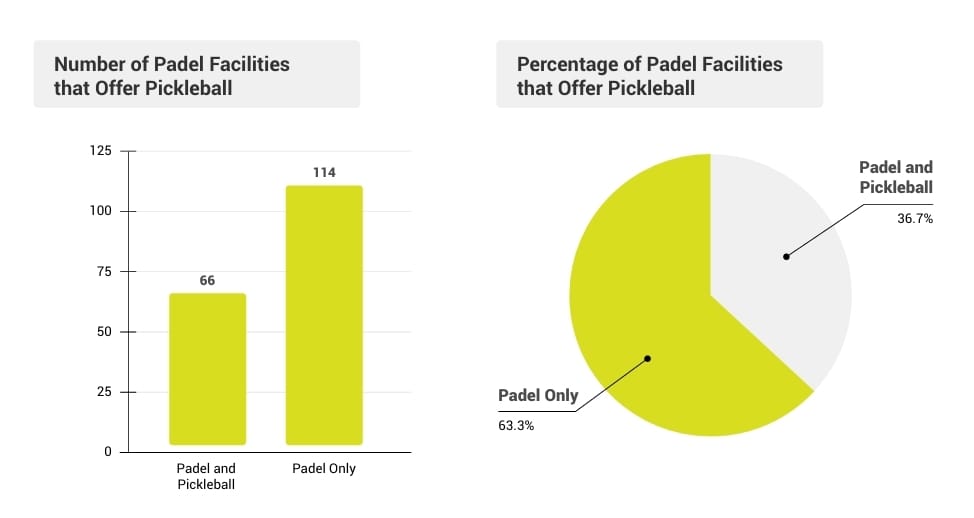 The other big story? Over a third of US padel clubs (36.7%) now also have pickleball courts.