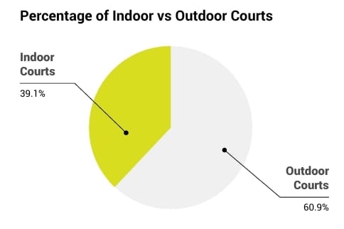 Of all US padel courts, 39.1% are now indoors. Source: State of Padel in the US Report.