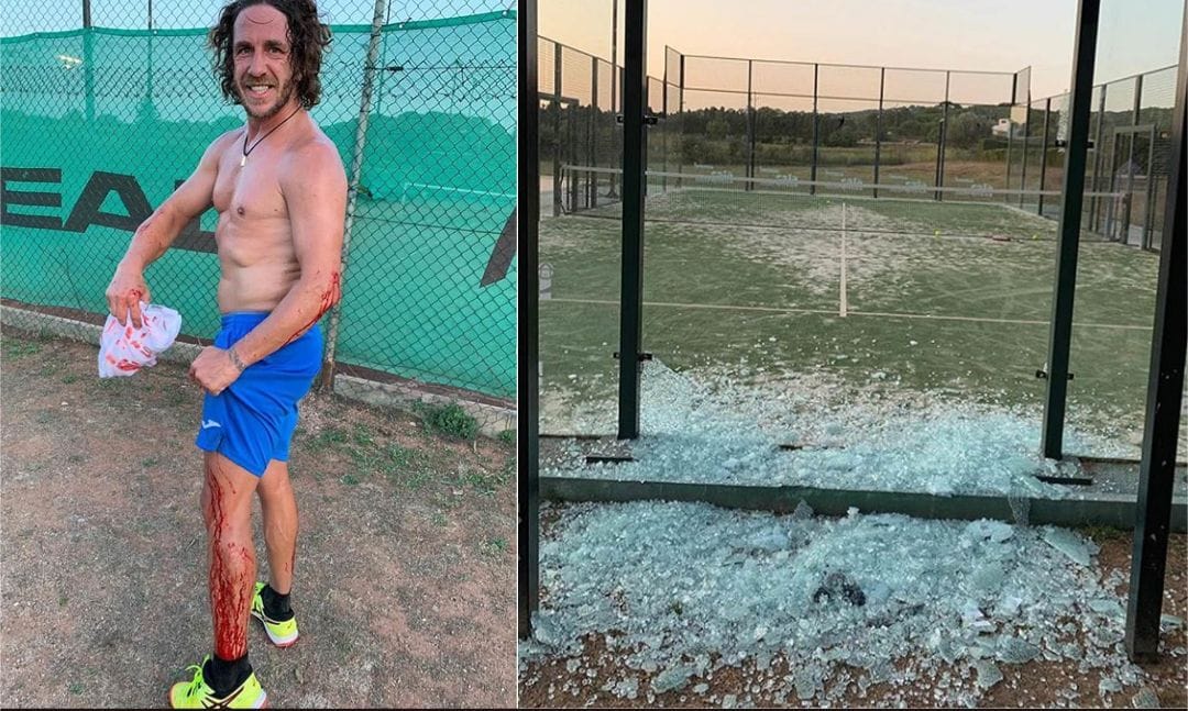 Ex-Barcelona footballer Carles Puyol with blood on his arms and legs after colliding with the back glass at a padel court in 2019. Image credit: LinkedIn.